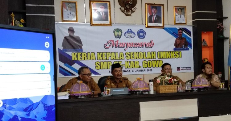 GOWA, SULSEL - Pengurus Musyawarah Kerja Kepala Sekolah (MKKS) SMP Kabupaten Gowa diawal tahun 2026 ini, menggelar pertemuan MKKS SMP Kabupaten Gowa, di ruang guru, SMP Negeri 1 Sungguminasa, Jalan H.Habibu Kulle No.1, Kelurahan Sungguminasa, Kecamatan Somba Opu, Kabupaten Gowa, Sulawesi Selatan pada Selasa (27/1/2026)